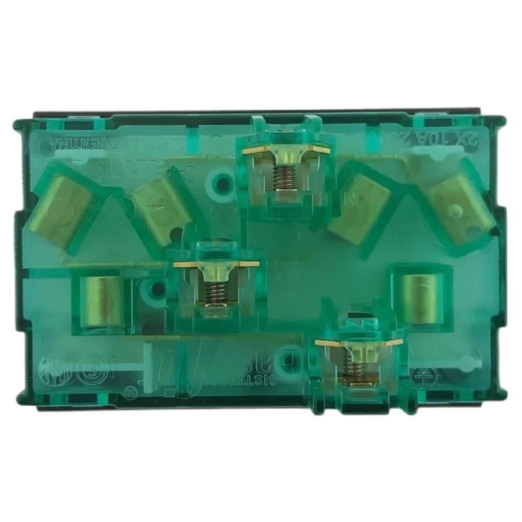 Permiten una conexión más rápida y sencilla que el conocido sistema Easyfit, porque ahora sus bornes de conexión son mas prácticos, y manteniendo el ahorrado de tiempo y cableado que dos módulos independientes. Cuerpo y frente en policarbonato, Contactos - Latón. Material Inyectado Cuerpo y frente con sensores térmicos en zonas de inyección, presecado de material y ciclo de inyección que garantizan las propiedades del material de origen (Sabic - Bayer).La uniformidad y valores altos de la presión de nuestros contactos en tomacorrientes, permiten que estos soporten sobre cargas hasta 16A sin inconvenientes.Otro detalle que hace a la calidad de los productos Cambre es la precisión en sus medidas de montaje en el bastidor y la retención en este, ya que con las fichas de 10 ? 20 A se originan fuerzas de extracción importantes que suelen arrastrar los tomacorrientes del bastidor. En Electrocity vas a encontrar todo lo que necesites de materiales eléctricos e iluminación led para tu obra. En nuestra tienda de Venta Online Electrocity podes encontrar todos los materiales eléctricos e iluminación led que necesites como ser: cables subterráneos tipo sintenax, cables unipolares, cables tipo taller, cables eléctricos, tableros eléctricos, gabinetes, contactores, guardamotores, lámparas led, tiras de led, luces de emergencia led, proyectores led, reflectores led, linternas led, paneles led, plafón led, tubos fluorescentes led, tubos led, térmicas, termomagnéticas, interruptores disyuntores diferenciales, bandejas portacables, cablecanales, megacanal, unicanal, alarmas x28, estabilizadores de tensión, UPS, porteros eléctricos, porteros visores, unifamiliar y multifamiliar, pinza amperométrica, multímetros, testers, detectores de tensión, agujereadoras eléctricas y a batería, zapatos de seguridad Boris, grupos electrógenos, rotopercutores, llaves de luz, precintos, jabalinas, puesta a tierra y TODO en materiales eléctricos e iluminación led. Comprá materiales eléctricos e iluminación led al mejor precio en Electrocity y te lo entregamos a domicilio. Registrate en nuestro Newsletter y entérate de las mejores ofertas en materiales eléctricos e iluminación led. Somos representantes de las principales marcas: 3M, ABB, AEA, Bulit, Boris, Cambre, Commax, Conextube, Fluke, Daisa, Delga, Facbsa, Gabexel, General Electric, G&E, Gama Sonic, Gen Rod, Hellermann Tyton, IMSA; Jeluz, Kalop. Ledvance, Osram, Philips, Plasnavi, Prysmian, Richi, Roker, Samet, Schneider Electric, Stanley, Suprobond, X-28, Zoloda. Entregamos materiales eléctricos e iluminación led a todo el país, y también podes retirar materiales eléctricos e iluminación led en nuestra sucursal Electrocity en San Cristóbal, Ciudad autónoma de Buenos Aires, CABA.