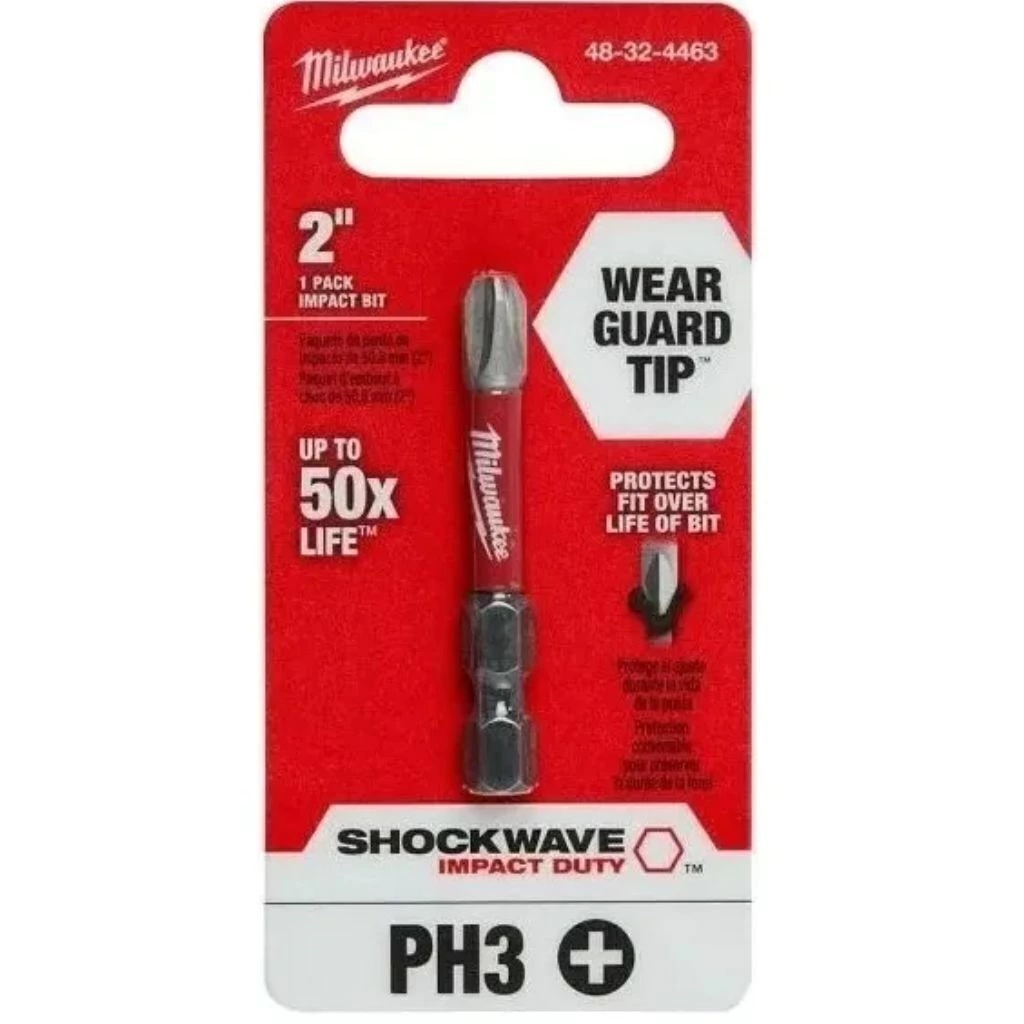 La Punta Atornillador Phillips Impacto Ph3 x 50mm Kit x Unidad Milwaukee 4832-4463 es una herramienta diseñada para profesionales que exigen durabilidad y alta performance. Fabricada con acero Alloy76 y un tratamiento térmico especializado, esta punta garantiza una vida útil hasta 50 veces superior a las puntas convencionales.